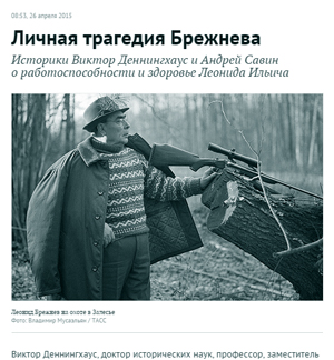 Портал «Лента.Ру» опубликовал статью «Личная трагедия Брежнева: Историки Виктор Деннингхаус и Андрей Савин о работоспособности и здоровье Леонида Ильича».
