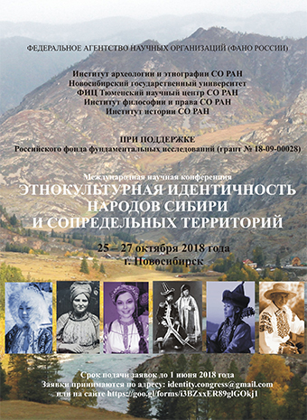 28 февраля 2018Институт археологии и этнографии СО РАН, Новосибирский государственный университет, Тюменский научный центр СО РАН, Институт философии и права СО РАН, Институт истории СО РАН 25–27 октября 2018 года проводит международную научную конференцию «Этнокультурная идентичность народов Сибири и сопредельных территорий».