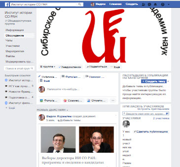 В социальной сети Facebook создана официальная группа Института истории Сибирского отделения Российской академии наук.