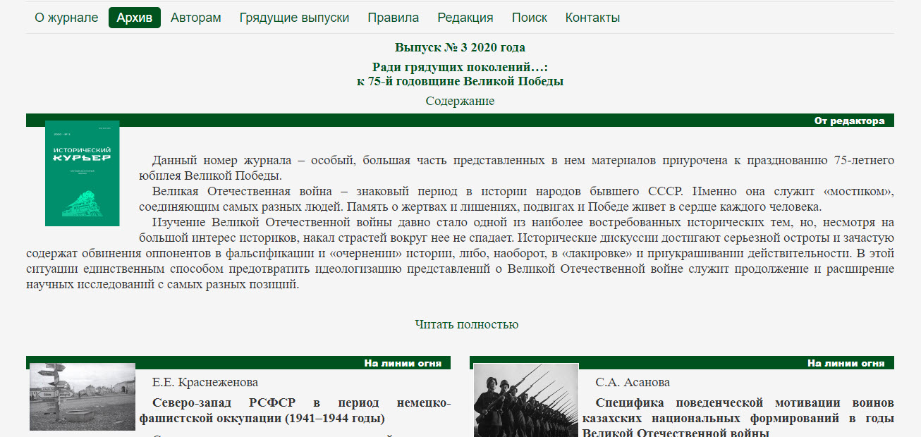Опубликован очередной номер «Исторического курьера», посвященный 75-летию Великой Победы