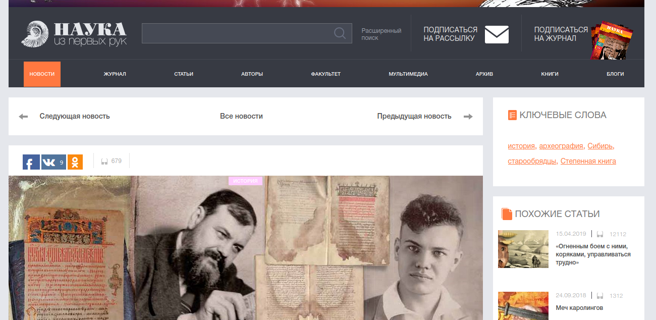 В научно-популярном междисциплинароном журнале «Наука из первых рук» опубликована статья о IV Всероссийской конференции с международным участием «Актуальные проблемы отечественной истории, источниковедения и археографии», посвященной памяти академика Николая Николаевича Покровского.