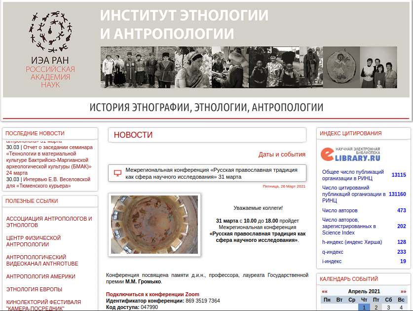 1 апреля 202131 марта 2021 г. в дистанционном формате прошла организованная Институтом этнологии и антропологии им. Н.Н. Миклухо-Маклая РАН Межрегиональная научная конференция «Русская православная традиция как сфера научного исследования», посвященная памяти доктора исторических наук, профессора, лауреата Государственной премии Российской Федерации Марины Михайловны Громыко (1927–2020).
