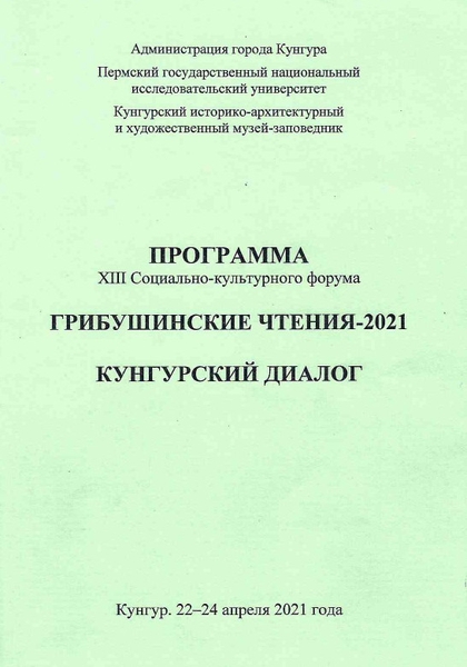 27 апреля 2021Сотрудница Института истории СО РАН, канд. ист. наук Евгения Владиславовна Комлева приняла участие в XIII Социально-культурном форуме «Грибушинские чтения-2021. Кунгурский диалог», который проходил в очном формате с 22 по 24 апреля 2021 г. в г. Кунгуре Пермского края.