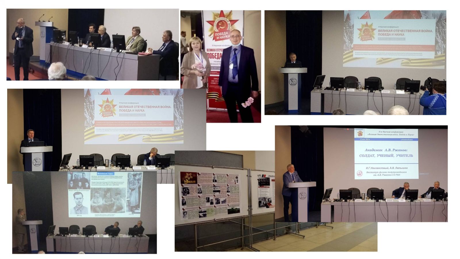 На утреннем заседании конференции были заслушаны выступления ведущих ученых Сибирского отделения РАН с докладами о выдающихся деятелях науки и ветеранах Великой Отечественной войны – о советском ученом-теплофизике мирового уровня, академике АН СССР С.С. Кутателадзе, о выдающимся физике-теоретике и организаторе Новосибирского Института ядерной физики, академике АН СССР Г.И. Будкере, о выдающимся ученом, специалисте в области полупроводниковой микроэлектроники и физики поверхности полупроводников, академике АН СССР А.В. Ржанове и о выдающимся ученом, генетике-эволюционисте, основателе Института цитологии и генетики, академике АН СССР Д.К. Беляеве. Далее были заслушаны доклады о вкладе военной медицины и ветеринарной науки в достижение победы и послевоенной стабилизации, об участии геологов и гуманитариев в укрепление обороноспособности СССР.