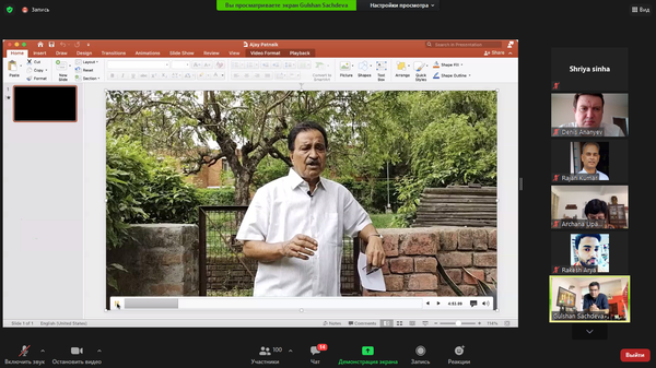 После просмотра участники встречи поделились собственными воспоминаниями о работе и общении с профессором А. Патнаиком. В частности, Д.А. Ананьев рассказал о многолетнем сотрудничестве Аджая Патнаика с Институтом истории СО РАН; его активном участии в международном научном российско-индийском семинаре, организованном Институтом истории СО РАН в 2007–2013 гг.