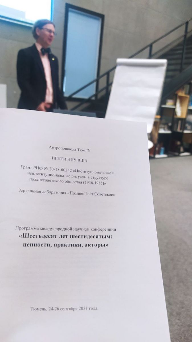 28 сентября 202124—26 сентября 2021 г. состоялась Международная научная конференция «Шестьдесят лет шестидесятым: ценности, практики, акторы». Организаторы конференции: Антропошкола Тюменского государственного университета и Институт гуманитарных историко-теоретических исследований имени А. В. Полетаева Национального исследовательского университета «Высшая школа экономики».