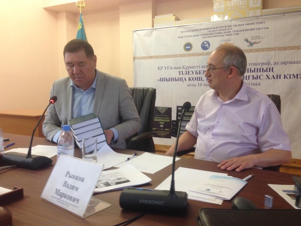 Открыли сессию казахстанские ученые. Главный научный сотрудник Института истории и этнологии им. Ч.Ч. Валиханова, академик НАН РК, д‑р ист. наук Булат Ешмухамбетович Кумеков выступил с обстоятельным докладом «О некоторых инновационных научных направлениях средневековой истории Казахстана». Докладчик дал обстоятельный анализ источников о кыпчаках, о ареале их расселения. Главный научный сотрудник отдела этнологии и антропологии того же института, д‑р ист. наук Серик Ескендирулы Ажигали подробно доложил об истоках, становлении и развитии казахстанской этнографической школы, особо подчеркнув основательность и фундаментальность исследований советских казахстанских этнографов, чьи исследования не утратили актуальности и по сей день.