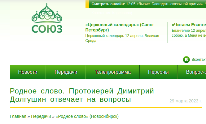 12 апреля 2023Научный сотрудник Института истории СО РАН д-р филол. наук Д.В. Долгушин принял участие в телепередаче каналов ОТС и «Союз» «Родное слово», выступив с рассказом о рукописных и старопечатных книгах, об «археографическом открытии Сибири», состоявшемся благодаря деятельности академика Н.Н. Покровского и его учеников.