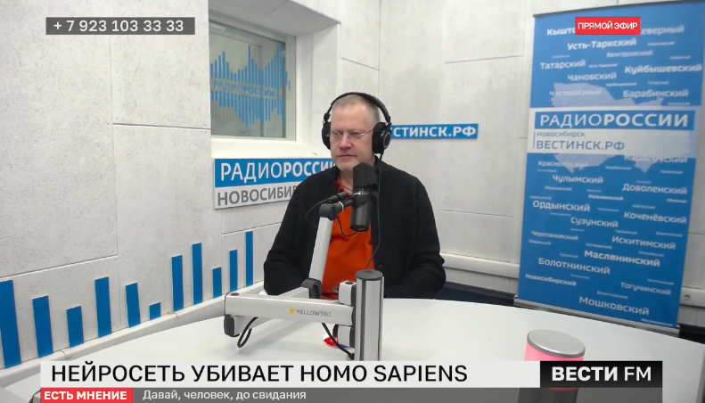 Феномен гуманитарного использования нейросетей обсудили в эфире радиостанции «Вести FM Новосибирск». В обсуждении принял участие сотрудник Института истории СО РАН В.В. Журавлев