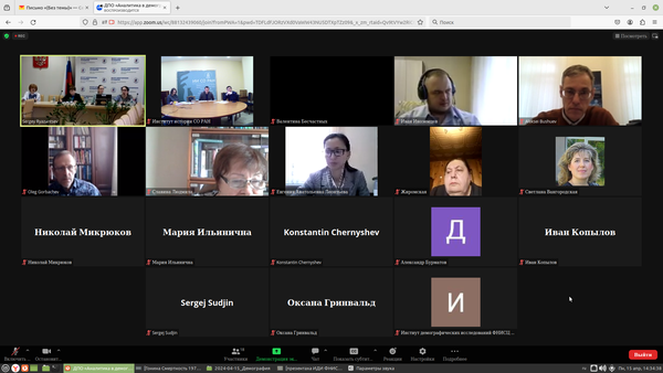 От Института истории СО РАН в семинаре приняли участие сотрудники научно-исследовательской группы «Демографическая история» старший научный сотрудник д‑р ист. наук О.Б. Дашинмжилов, старший научный сотрудник канд. ист. наук Н.В. Гонина и научный сотрудник канд. ист. наук М.А. Семенов.