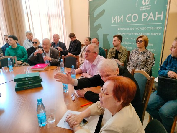 В конференц-зале Института истории собрались члены редакционной коллегии 4‑х томного издания «История Сибири», редколлегия и авторы третьего тома, научные сотрудники Института истории СО РАН, журналисты. Присоединились (он-лайн) к обсуждению тома и поздравили с выходом книги ученые – историки из научных учреждений России: Иркутска и Владивостока, Новосибирска и Томска, Екатеринбурга и Красноярка.