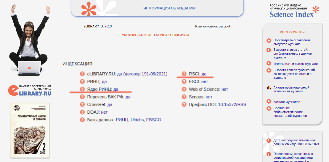 Журнал «Гуманитарные науки в Сибири» включен в Russian Science Citation Index (RSCI) и Ядро РИНЦ