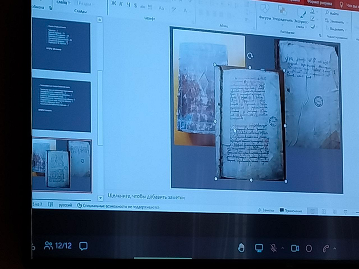 Большой интерес вызвали доклады филологов‑древников из Санкт–Петербурга – И.А. Лобаковой «О личностном отношении к событиям составителей исторических произведений XVII века» и О.С. Сапожниковой «Проложное чтение “Слово о любви” и “обоюдные” “Божественной комедии” Данте». И.А. Лобаковой удалось выявить художественные приемы в исторических памятниках XVII века, с помощью которых их авторы имели возможность выразить личностное отношение к произошедшему. О.С. Сапожникова сумела охарактеризовать связь проложного «Слова о любви» псевдо-Златоуста и «Божественной комедии» Данте, сопроводив свой доклад великолепными визуальными источниками.