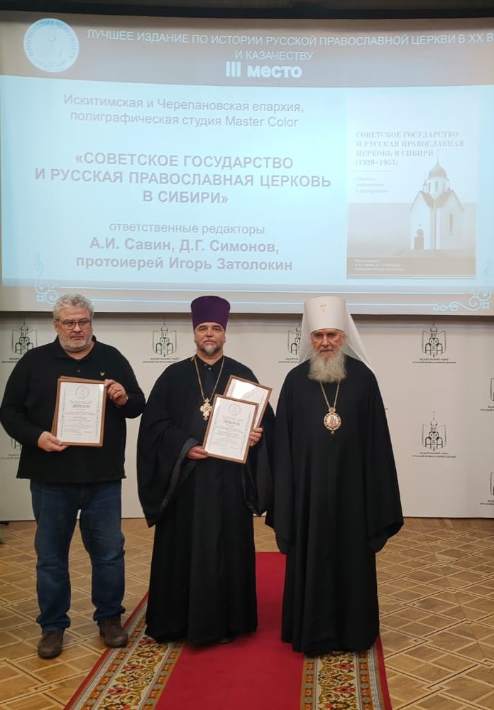 В номинации «Лучшее издание по истории Русской Православной Церкви в XX веке и казачеству» дипломом III степени был награжден сборник документов и материалов «Советское государство и Русская Православная Церковь в Сибири (1920–1953)» (Новосибирск, 2023 г.). Одним из ответственных редакторов и составителей сборника является зав. сектором общественно-политического развития Института истории СО РАН Андрей Иванович Савин, принявший участие в церемонии награждения.