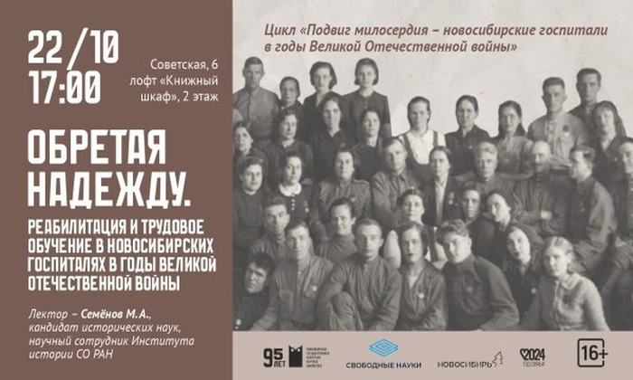 11 ноября 2024В рамках реализации проекта АНО «Свободные науки» по созданию «Интерактивной карты госпиталей Новосибирской области в годы Великой Отечественной войны», поддержанного правительством Новосибирской области, научным сотрудником сектора аграрной и демографической истории, кандидатом исторических наук Михаилом Александровичем Семеновым в Новосибирской государственной областной научной библиотеке был прочитан цикл открытых лекций, посвященных различным аспектам истории новосибирских госпиталей в годы Великой Отечественной войны.