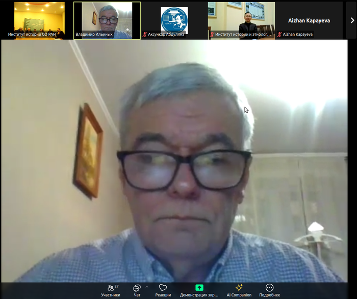 22 ноября 202421 ноября 2024 г. состоялась в режиме онлайн совместная научная сессия Института истории СО РАН и Института истории и этнологии им. Ч.Ч. Валиханова (Республика Казахстан) «Итоги новейших исследований и перспективы научного сотрудничества».