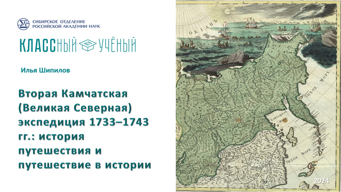 2 декабря 2024Старший научный сотрудник сектора археографии и источниковедения Института истории СО РАН, канд. ист. наук И.А. Шипилов по приглашению организаторов проекта СО РАН «КЛАССный ученый» выступил с научно-популярная лекцией-презентацией «Вторая Камчатская (Великая Северная) экспедиция 1733–1743 гг.: история путешествия и путешествие в истории». Лекция посвящена крупнейшей в мировой истории экспедиции как по числу участников, территориальному охвату работ и полученным результатам, так и по количеству научных трудов российских, немецких, датских, американских, английских, французских ученых, посвященных путешествию.