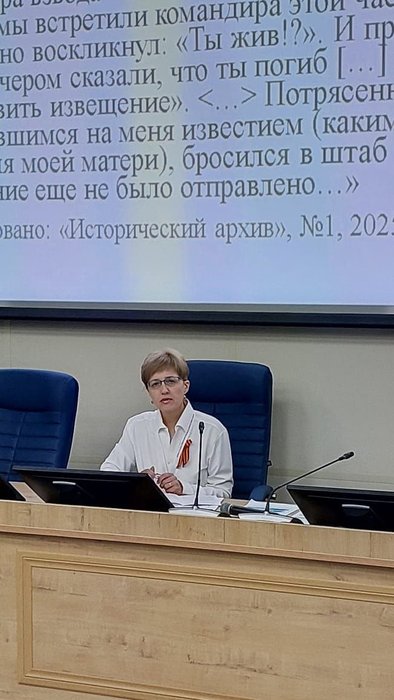 В онлайн формате выступили: старший научный сотрудник Г.М. Запорожченко с докладом «Солдаты и ученые: военные биографии лидеров Новосибирского научного центра», главный научный сотрудник С.А. Красильников − «Жизнь как призвание: Варлен Львович Соскин − фронтовик, ученый, наставник (1925−2021)», научный сотрудник М.А. Семенов − «Медицинская наука СССР в годы Великой Отечественной войны», ведущий научный сотрудник О.Н. Шелегина − «С заботой о будущем: фронтовые письма сибирских ученых», заведующий сектором истории второй половины XVI − начала XX века М.В. Шиловский − «А.Н. Копылов − фронтовик-историк».