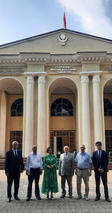 6 октября В.М. Рынков посетил Институт истории, археологии и этнографии им. А. Дониша национальной академии наук Таджикистана. Состоялась встреча с директором Института д-ром ист. наук Ахмадхоном Амрохоном Муродзодой. Участники встречи проинформировали друг друга о деятельности своих научных организаций. В.М. Рынков имел возможность осмотреть Институт, встретиться и пообщаться с сотрудниками. В частости, встретился с д-ром ист. наук. чл.-кор. НАТ, гл. науч. сотр. Хайдаршо Пирумшоевичем Пирумшоевым, посетил Национальный музей древностей Таджикистана (НМДТ) – подразделение Института.