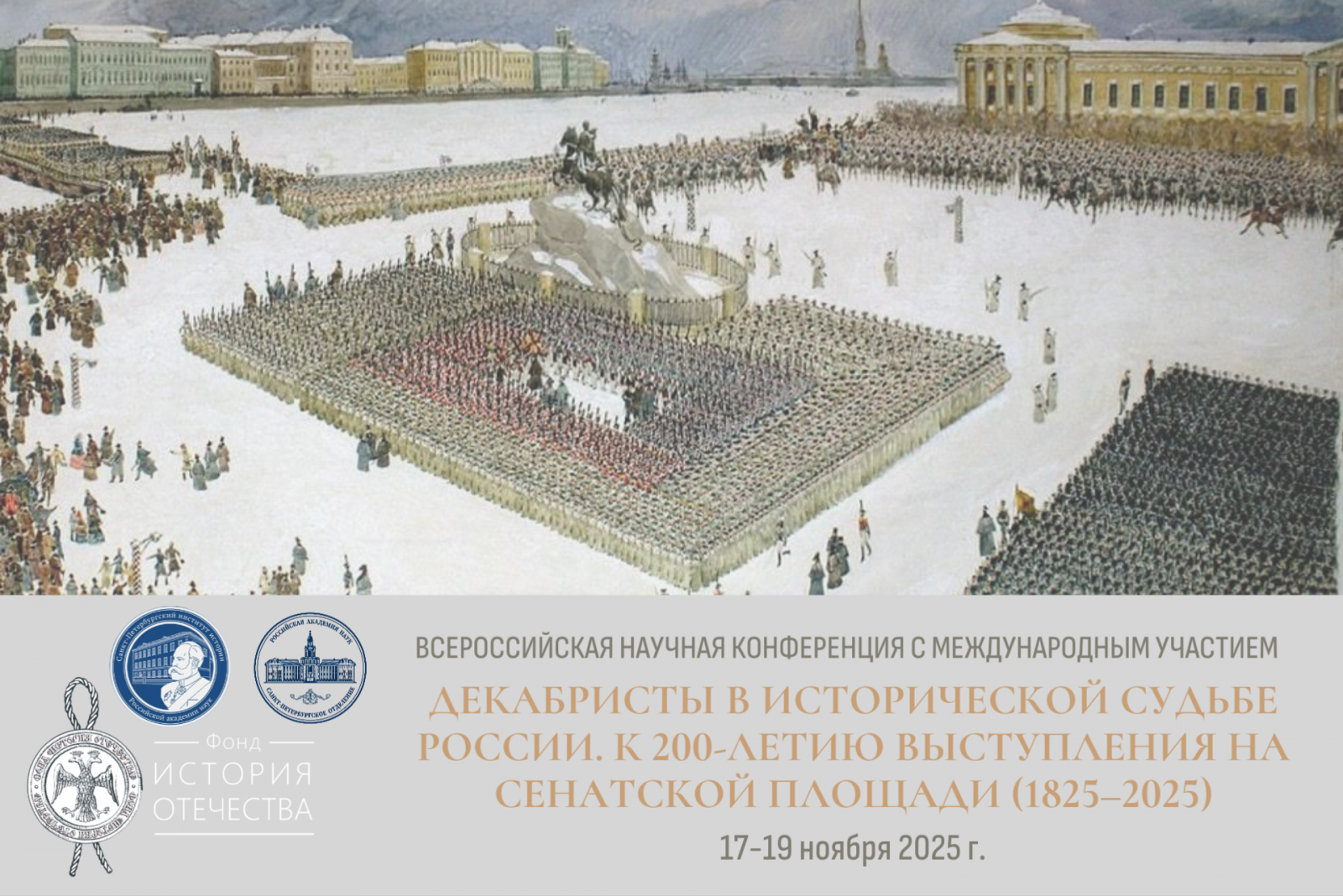 21 ноября 2025Главный научный сотрудник Института истории СО РАН д-р ист. наук Наталья Петровн Матханова приняла участие во Всероссийской с международным участием научной конференции «Декабристы в исторической судьбе России: к 200-летию событий на Сенатской площади. 1825−2025», состоявшейся 17–19 ноября 2025 г. в Санкт-Петербурге.