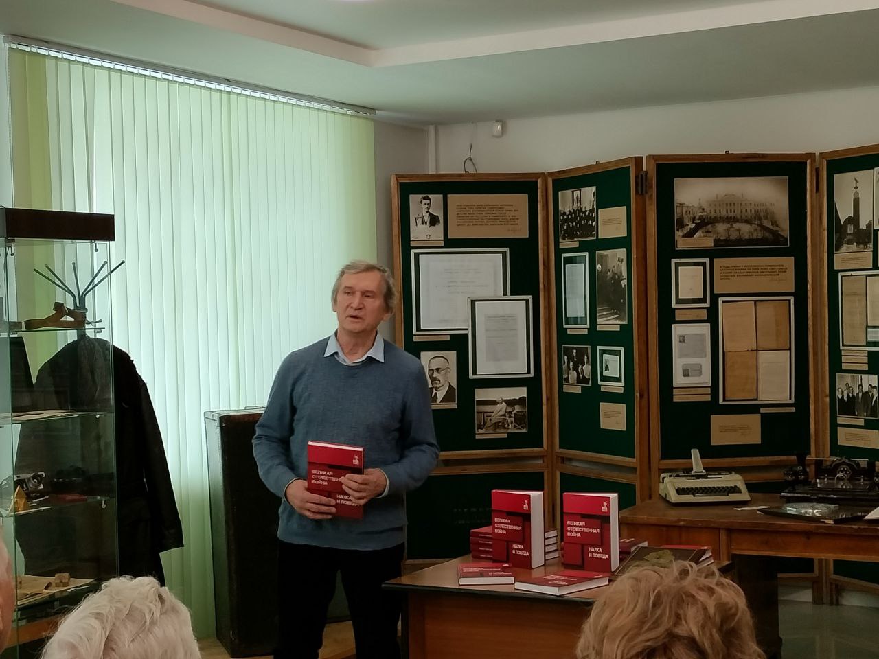 Презентация книги проходила 4 декабря 2025 г. в Центре хранения материалов по истории Сибирского отделения РАН в Институте истории СО РАН, в одном из залов, где расположена экспозиция, посвященная ученому-математику, академику Михаилу Алексеевичу Лаврентьеву, основателю Академгородка в Новосибирске, в годы войны ученый проводил работу по усилению обороноспособности СССР. Одна из глав в представленной книге - о М.А. Лаврентьеве, ее автор Васильев Анатолий Александрович, доктор физико-математических наук, профессор, главный научный сотрудник Института гидродинамики им. М. А. Лаврентьева СО РАН рассказал о некоторых эпизодах из жизни ученого.