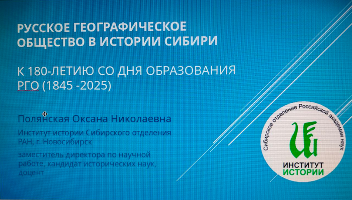 18 декабря 202518 декабря состоялась лекция (он-лайн) кандидата исторических наук, заместителя директора по научной работе Института истории СО РАН Оксаны Николаевны Полянской. Тема лекции: «Российское географическое общество в истории Сибири. К 180-летию со дня образования РГО (1845−2025)»