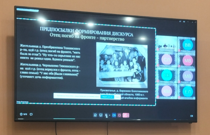 Большой интерес вызвал доклад младшего научного сотрудника ИАЭТ СО РАН А.А. Рублевой «Мужчина голова, а женщина шея»: к вопросу о главенстве в сельской послевоенной семье (по полевым материалам Приобья)». Были представлены обработанные материалы интервью, собранных автором в результате исследований в деревнях северного Приобья. А.А. Рублева выявила три типа отношений в семье – с преобладанием мужского главенства, женского главенства и партнерский, отметила влияние исторических событий, в первую очередь Великой отечественной войны, а также ряда социальных процессов на формирование конкретного типа отношений и его поколенческую динамику.