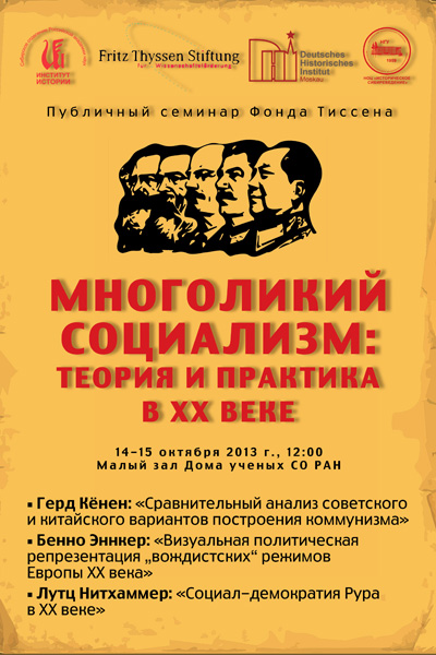 10 октября 201314 и 15 октября 2013 г. Институт истории СО РАН совместно с Германским историческим институтом в Москве (ГИИМ) проводят публичный семинар на тему «Многоликий социализм: теория и практика в ХХ веке».