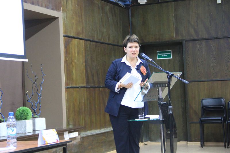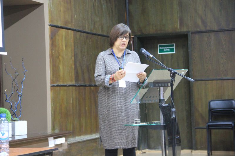 Фото 7. С пленарным докладом «Музейное пространство Крыма: проблемы, приоритеты, коммуникация» выступает Н.М. Мирошниченко – к. филолог. н., заместитель генерального директора ГБУ РК «Историко-культурный, мемориальный музей-заповедник «Киммерия Волошина», заведующая домом-музеем М.А. Волошина, член ИКОМ.