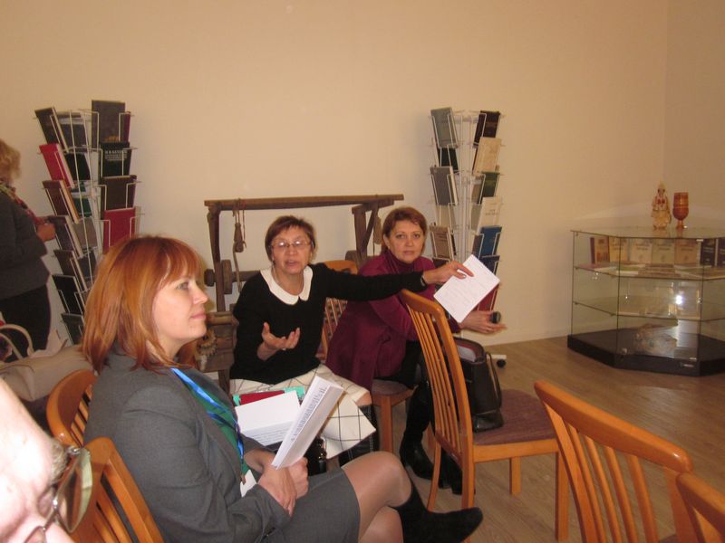 Фото 12. Дискуссия музеологов в Институте истории СО РАН. Слева направо: д.и.н. Е.А. Полякова (г. Барнаул), к.и.н. Сальникова И.В. (г. Новосибирск), кандидат культурологии Л. А. Кравцова (г.Кемерово)
